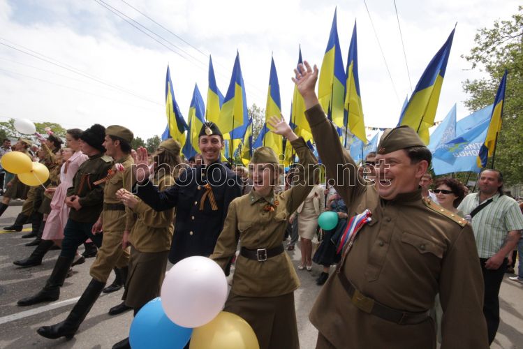 Участники парада по случаю 65-й годовщины Победы в Великой Отечественной войне, в Севастополе (Крым), в воскресенье, 9 мая 2010 г. В центре Севастополя более 50 тысяч человек - участников Парада Победителей, прохождения войск гарнизона, жители и гости города - приняли участие в праздновании 65-й годовщины Победы в Великой Отечественной войне и 66-й годовщины освобождения города от немецко-фашистских захватчиков. Фото Алексея Сувирова / УНИАН