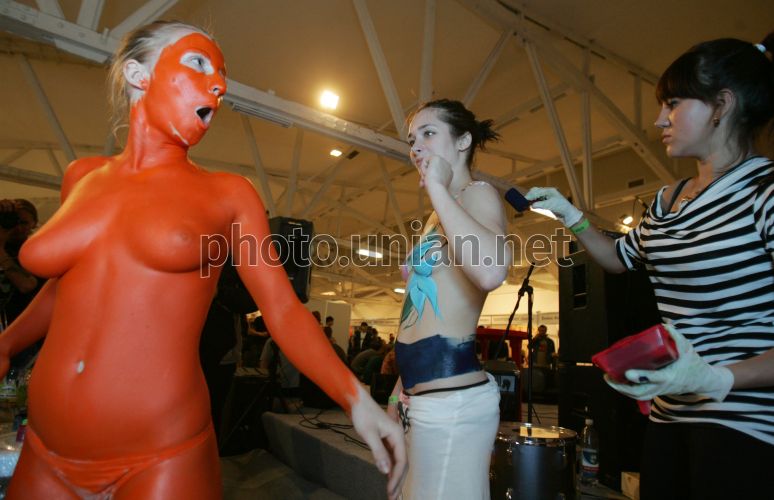 Участницы VI Международного фестиваля тату и пирсинга «Tattoo- Collection/2010» в Киеве, в пятницу, 21 мая 2010 г. Ежегодный фестиваль татуировки и пирсинга – это площадка, где соревнуются в своём умении десятки мастеров, собираются тысячи любителей и почитателей этого искусства, а также производится выставка-продажа оборудования для тату и пирсинга как отечественных, так и зарубежных фирм-производителей. Фото Владимира Гонтара / УНИАН