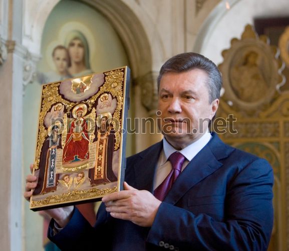 Президент Украины Виктор Янукович во время посещения Кафедрального Спасо-Преображенского собора в Сумах, в четверг, 17 июня 2010 г. В этот день Виктор Янукович посетил Сумскую область с рабочим визитом. Фото Михаила Маркива / POOL / УНИАН