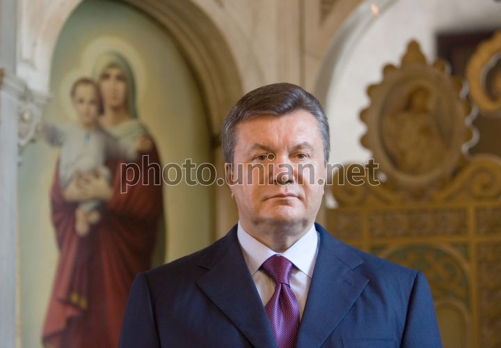 Президент Украины Виктор Янукович во время посещения Кафедрального Спасо-Преображенского собора в Сумах, в четверг, 17 июня 2010 г. В этот день Виктор Янукович посетил Сумскую область с рабочим визитом. Фото Михаила Маркива / POOL / УНИАН