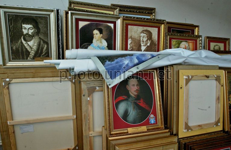 Портреты выдающихся украинцев «Украинцы в мире» после демонтажа выставки, в «Украинском доме», в Киеве, в среду, 7 июля 2010 г. Народный депутат Пётр Ющенко предлагает парламенту провести 7 июля слушания о роли и мерах государственной поддержки национальной галереи портретов выдающихся украинцев «Украинцы в мире», которой экс-Президент Виктор Ющенко присвоил статус национальной. Экспозиция выставки, открывшейся в июле 2008 года, насчитывает около 2 тыс. портретов. В декабре этого года в Верховной Раде состоятся парламентские слушания на тему «Украинцы в мире». За соответствующее постановление проголосовало 376 народных депутатов. Фото Александра Синицы / УНИАН