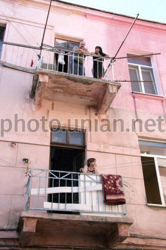 Жители дома, стоя на балконе, смотрят во двор, в Одессе, в пятницу, 20 августа 2010 г. В Одессе стартовал социальный проект «Одесский дворик», целью которого является благоустройство придомовых территорий. Когда-то одесские дворы были эпицентром жизни жителей города, поэтому их восстановление — это не только облагораживание среды обитания, но и возрождение культурного наследия, воссоздание духа былой Одессы, из уютных двориков в большой мир вышли многие известные музыканты, ученые, литераторы и артисты. Двор на улице Базарная,95 претендует на звание лучшего. Здесь есть свой фонтан, цветочные клумбы. Жильцы дома иногда собираются вокруг фонтана поговорить, послушать музыку, стихи, последние одесские байки. Фото Вячеслава Тенякова / УНИАН