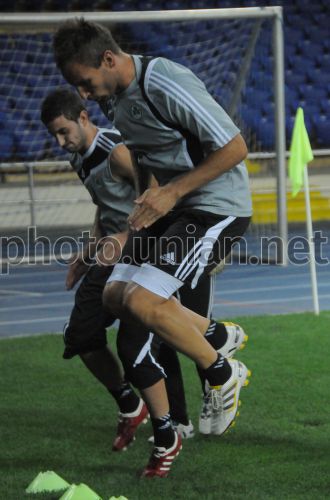 Игроки ФК ”Омония” (Никосия, Кипр) во время открытой тренировки, в Харькове, в среду, 25 августа 2010. 26 августа в Харькове пройдет матч плей-офф раунда Лиги Европы по футболу между ФК ”Омония” (Никосия, Кипр) и ФК ”Металлист” (Харьков). Фото Владимира Андреева / УНИАН