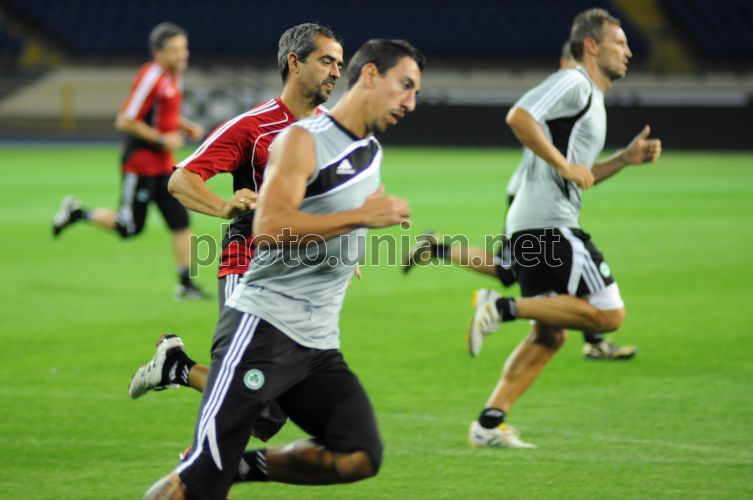 Игроки ФК ”Омония” (Никосия, Кипр) во время открытой тренировки, в Харькове, в среду, 25 августа 2010. 26 августа в Харькове пройдет матч плей-офф раунда Лиги Европы по футболу между ФК ”Омония” (Никосия, Кипр) и ФК ”Металлист” (Харьков). Фото Игоря Чекачкова / УНИАН