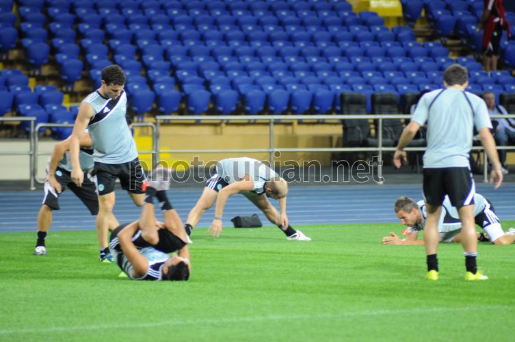 Игроки ФК ”Омония” (Никосия, Кипр) во время открытой тренировки, в Харькове, в среду, 25 августа 2010. 26 августа в Харькове пройдет матч плей-офф раунда Лиги Европы по футболу между ФК ”Омония” (Никосия, Кипр) и ФК ”Металлист” (Харьков). Фото Игоря Чекачкова / УНИАН