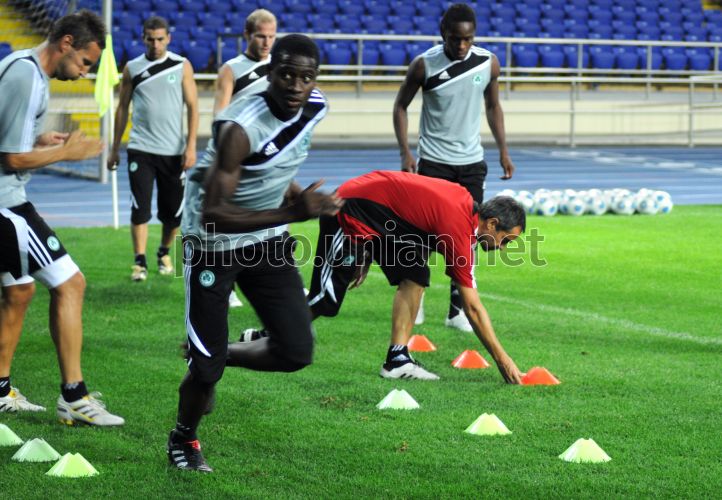Игроки ФК ”Омония” (Никосия, Кипр) во время открытой тренировки, в Харькове, в среду, 25 августа 2010. 26 августа в Харькове пройдет матч плей-офф раунда Лиги Европы по футболу между ФК ”Омония” (Никосия, Кипр) и ФК ”Металлист” (Харьков). Фото Игоря Чекачкова / УНИАН