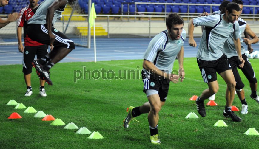 Игроки ФК ”Омония” (Никосия, Кипр) во время открытой тренировки, в Харькове, в среду, 25 августа 2010. 26 августа в Харькове пройдет матч плей-офф раунда Лиги Европы по футболу между ФК ”Омония” (Никосия, Кипр) и ФК ”Металлист” (Харьков). Фото Игоря Чекачкова / УНИАН