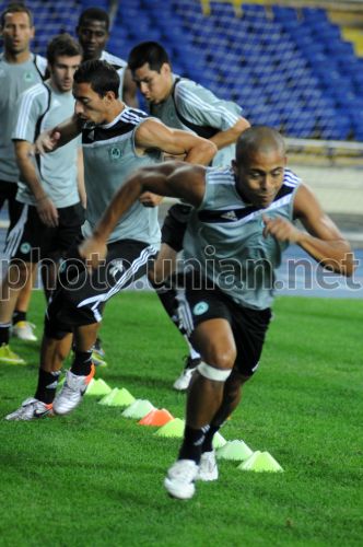 Игроки ФК ”Омония” (Никосия, Кипр) во время открытой тренировки, в Харькове, в среду, 25 августа 2010. 26 августа в Харькове пройдет матч плей-офф раунда Лиги Европы по футболу между ФК ”Омония” (Никосия, Кипр) и ФК ”Металлист” (Харьков). Фото Игоря Чекачкова / УНИАН