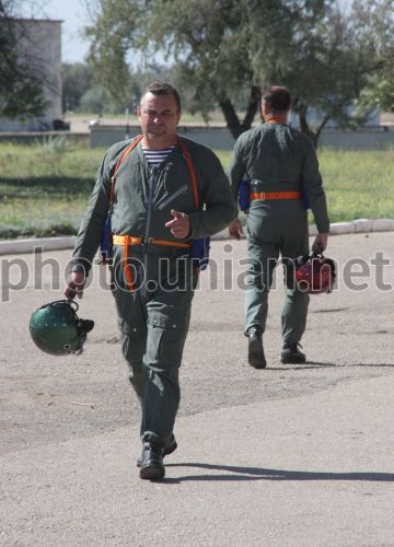 Летчики палубной авиации Северного флота ВМФ России на полигоне взлетно-посадочных систем «Нитка», в поселке Новофедоровка (Крым), в среду, 15 сентября 2010 г. Полигон взлетно-посадочных систем «Нитка» создан в 1980 году для тренировок летного состава корабельной авиации и проведения испытаний авиационной и другой техники, которая используется для обеспечения посадки летательных аппаратов на палубу авианосцев. Согласно подписанному в 1997 году Соглашению между правительствами Украины и Российской Федерации, полигон «Нитка» с 2001 года используется российской стороной. В 2005 году директивой министра обороны Украины полигон «Нитка» был подчинен командованию ВМС Украины. В 2006 и в 2008-2009 годах полеты российских морских летчиков на нем не проводились. Фото Алексея Сувирова / УНИАН