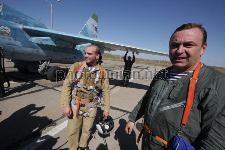 Летчики палубной авиации Северного флота ВМФ России на полигоне взлетно-посадочных систем «Нитка», в поселке Новофедоровка (Крым), в среду, 15 сентября 2010 г. Полигон взлетно-посадочных систем «Нитка» создан в 1980 году для тренировок летного состава корабельной авиации и проведения испытаний авиационной и другой техники, которая используется для обеспечения посадки летательных аппаратов на палубу авианосцев. Согласно подписанному в 1997 году Соглашению между правительствами Украины и Российской Федерации, полигон «Нитка» с 2001 года используется российской стороной. В 2005 году директивой министра обороны Украины полигон «Нитка» был подчинен командованию ВМС Украины. В 2006 и в 2008-2009 годах полеты российских морских летчиков на нем не проводились. Фото Алексея Сувирова / УНИАН