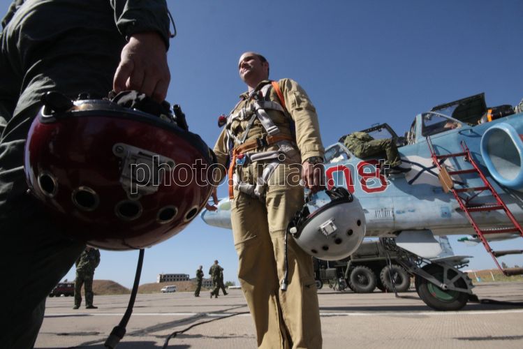 Летчики палубной авиации Северного флота ВМФ России на полигоне взлетно-посадочных систем «Нитка», в поселке Новофедоровка (Крым), в среду, 15 сентября 2010 г. Полигон взлетно-посадочных систем «Нитка» создан в 1980 году для тренировок летного состава корабельной авиации и проведения испытаний авиационной и другой техники, которая используется для обеспечения посадки летательных аппаратов на палубу авианосцев. Согласно подписанному в 1997 году Соглашению между правительствами Украины и Российской Федерации, полигон «Нитка» с 2001 года используется российской стороной. В 2005 году директивой министра обороны Украины полигон «Нитка» был подчинен командованию ВМС Украины. В 2006 и в 2008-2009 годах полеты российских морских летчиков на нем не проводились. Фото Алексея Сувирова / УНИАН