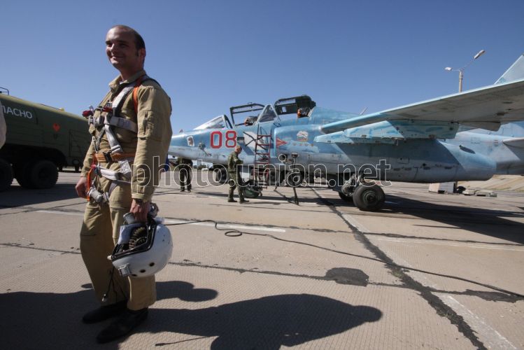 Летчик палубной авиации Северного флота ВМФ России на полигоне взлетно-посадочных систем «Нитка», в поселке Новофедоровка (Крым), в среду, 15 сентября 2010 г. Полигон взлетно-посадочных систем «Нитка» создан в 1980 году для тренировок летного состава корабельной авиации и проведения испытаний авиационной и другой техники, которая используется для обеспечения посадки летательных аппаратов на палубу авианосцев. Согласно подписанному в 1997 году Соглашению между правительствами Украины и Российской Федерации, полигон «Нитка» с 2001 года используется российской стороной. В 2005 году директивой министра обороны Украины полигон «Нитка» был подчинен командованию ВМС Украины. В 2006 и в 2008-2009 годах полеты российских морских летчиков на нем не проводились. Фото Алексея Сувирова / УНИАН