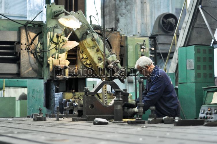 Рабочий в гидротурбинном цеху ОАО ”Турбоатом”, в Харькове, в четверг, 23 сентября 2010 г. Открытое акционерное общество «Турбоатом» — предприятие, специализирующееся на выпуске паровых турбин для тепловых электростанций (ТЭС), атомных электростанций (АЭС) и теплоэлектроцентралей (ТЭЦ); гидравлических турбин для гидроэлектростанций (ГЭС) и гидроаккумулирующих электростанций (ГАЭС); газовых турбин и парогазовых установок (ПГУ) для ТЭС и другого энергетического оборудования. Фото Игоря Чекачкова / УНИАН