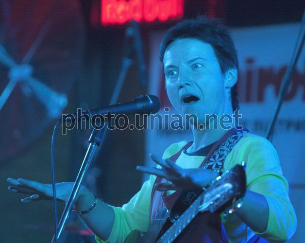 Вокалистка и гитаристка российской рок-группы «Сурганова и оркестр» Светлана Сурганова выступает во время концерта, в Киеве, в среду, 13 октября 2010 г. Фото УНИАН
