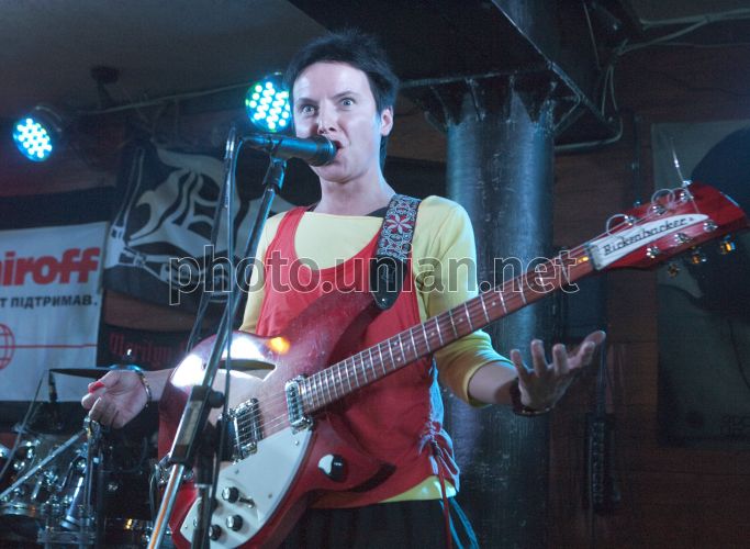 Вокалистка и гитаристка российской рок-группы «Сурганова и оркестр» Светлана Сурганова выступает во время концерта, в Киеве, в среду, 13 октября 2010 г. Фото УНИАН