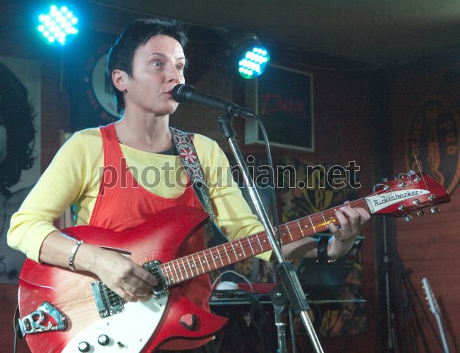 Вокалистка и гитаристка российской рок-группы «Сурганова и оркестр» Светлана Сурганова выступает во время концерта, в Киеве, в среду, 13 октября 2010 г. Фото УНИАН
