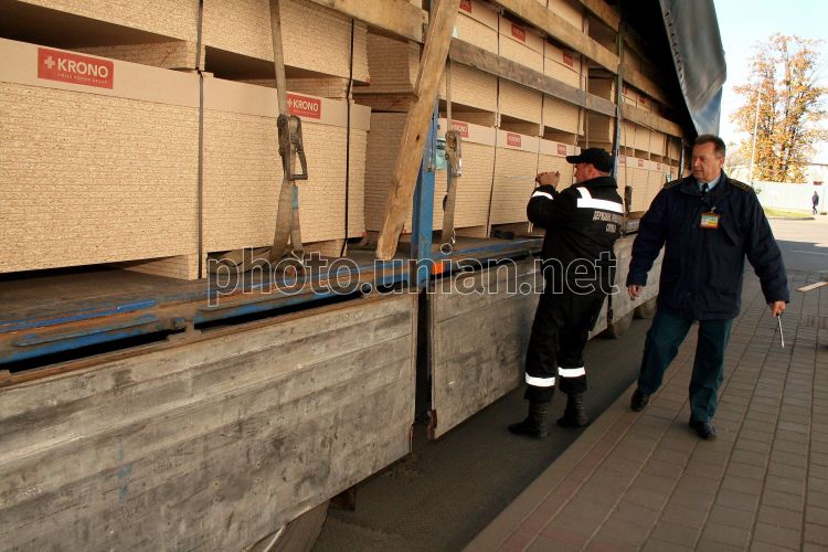 Военнослужащий Чопского пограничного отряда со служебной собакой и работник таможенной службы проверяют груз на предмет контрабанды на территории грузового терминала на международном пункте пропуска для железнодорожного сообщения, в Чопе (Закарпатская область), в четверг, 14 октября 2010 г. Фото Яноша Немеша / УНИАН