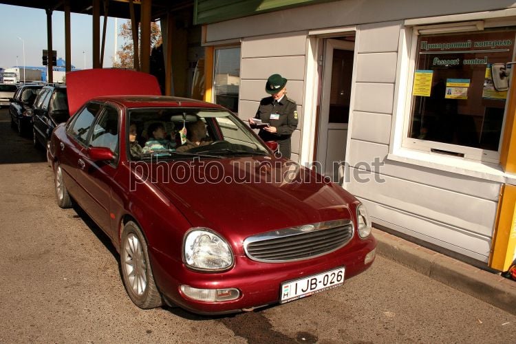 Женщина-военнослужащая Чопского пограничного отряда проводит паспортный контроль граждан на международном автомобильном пункте пропуска «Тиса – Захонь» на украинско-венгерской границе, в Чопе (Закарпатская область), в четверг, 14 октября 2010 г. Фото Яноша Немеша / УНИАН