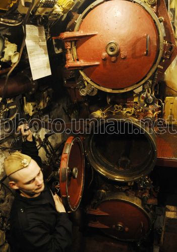 Матрос Военно-морского флота Украины на борту подводной лодки ВМС Украины «Запоріжжя», в Севастополе (Крым), в среду, 24 ноября 2010 г. Во время посещения подводной лодки ВМС Украины «Запоріжжя» сообщил о том, что общий ремонт подводной лодки ВМС Украины «Запоріжжя» стоит около 40 млн. грн., при этом «выделено практически все, полностью профинансировано», По его словам, «сегодня на подводной лодке практически завершаются ремонтные работы, следующий этап - швартовые испытания». По словам министра, «будут проводиться испытания всех агрегатов и систем подводной лодки», и это должно быть сделано до 15 декабря. На совещании в Севастополе с участием министра отмечалось, что на май 2011 года запланированы ходовые испытания «Запоріжжя», однако для того, чтобы корабль смог выйти в море, на восстановление его технической готовности необходимо еще около 14 млн. грн. Подводная лодка «Запоріжжя» находится в ремонте с 2001 года. В составе ВМС Украины - с 1997 года. Фото Андрея Любимова / УНИАН