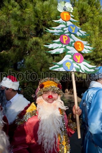 Участник шествия Дедов Морозов ”Мороз-парад”, в Ялте (Крым), в субботу, 25 декабря 2010 г. Парад Дедов Морозов стартовал от театра Чехова и прошел торжественным шествием по набережной. В рамках праздника выступили музыкальные и танцевальные коллективы, а шествие сопровождал городской оркестр. Принять участие в ”Мороз-параде” мог каждый. При этом главным условием было наличие костюма Деда Мороза. Представители Книги рекордов Украины зарегистрировали установление рекорда Украины в категории ”Массовые мероприятия” - самый многочисленный парад Дедов Морозов на Южном Берегу Крыма. Фото Сергея Титова / УНИАН