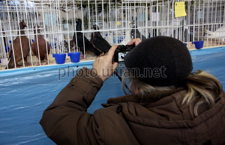 Мужчина фотографирует птиц во время Закарпатской областной выставки голубей в Ужгороде, в субботу, 22 января 2011 г. На выставке, которая проходит 22-23 января, представлено около 300 голубей. Фото Яноша Немеша / УНИАН