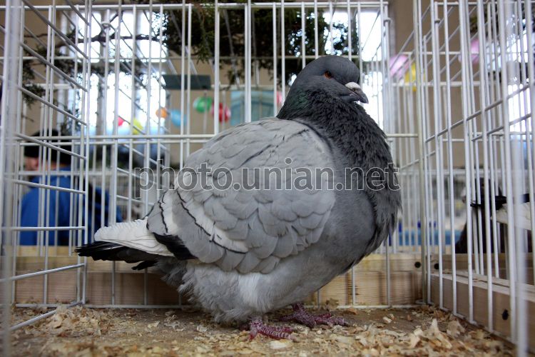 Голубь в клетке во время Закарпатской областной выставки голубей в Ужгороде, в субботу, 22 января 2011 г. На выставке, которая проходит 22-23 января, представлено около 300 голубей. Фото Яноша Немеша / УНИАН