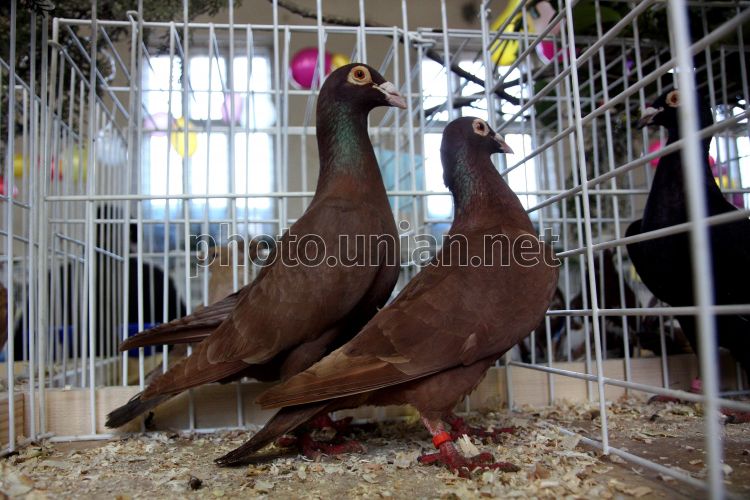 Пара голубей в клетке во время Закарпатской областной выставки голубей в Ужгороде, в субботу, 22 января 2011 г. На выставке, которая проходит 22-23 января, представлено около 300 голубей. Фото Яноша Немеша / УНИАН