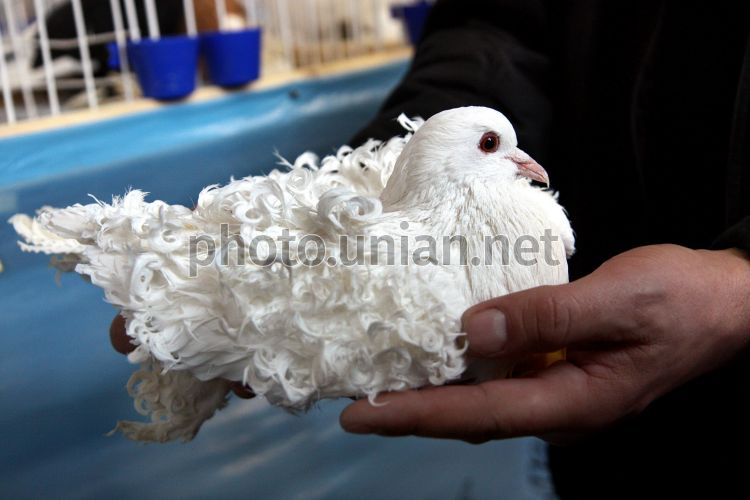Участник Закарпатской областной выставки голубей демонстрирует свою птицу в Ужгороде, в субботу, 22 января 2011 г. На выставке, которая проходит 22-23 января, представлено около 300 голубей. Фото Яноша Немеша / УНИАН