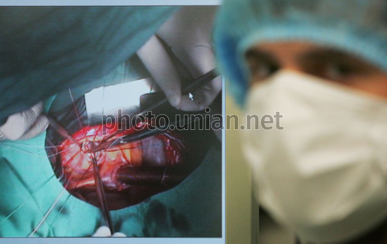 Медицинские работники во время операции по протезированию аортального клапана в Киевском городском центре сердца, во вторник, 15 февраля 2011 г. В этот день директор Научного центра сердечно-сосудистой хирургии имени Бакулева Лео Бокерия и руководитель Киевского городского Центра сердца Борис Тодуров провели совместную операцию по протезированию аортального клапана в Киевском городском центре сердца. Фото Владимира Гонтара / УНИАН