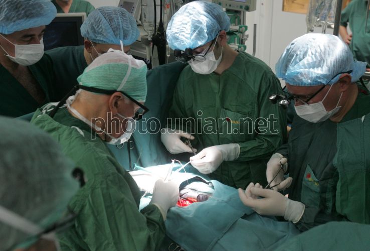 Медицинские работники во время операции по протезированию аортального клапана в Киевском городском центре сердца, во вторник, 15 февраля 2011 г. В этот день директор Научного центра сердечно-сосудистой хирургии имени Бакулева Лео Бокерия и руководитель Киевского городского Центра сердца Борис Тодуров провели совместную операцию по протезированию аортального клапана в Киевском городском центре сердца. Фото Владимира Гонтара / УНИАН