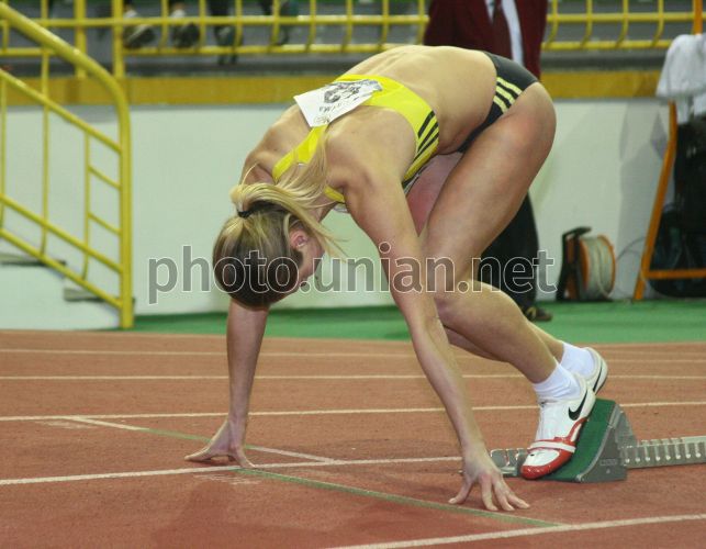 Участница Зимнего чемпионата Украины по легкой атлетике во время соревнований по бегу среди женщин в Сумах, в среду, 16 февраля 2011 г. В соревнованиях, которые начались 15 февраля, принимают участие около 800 спортсменов из всех областей Украины, а также представители России и Беларуси. Чемпионат будет длиться на протяжении четырех дней. По его завершении будет сформирована сборная Украины, которая примет участие в первенстве Европы 4-6 марта в Париже. Фото Виталия Кохана / УНИАН