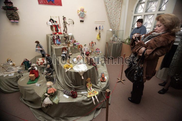 Посетительница выставки авторской куклы "Крым - остров мастеров" рассматривает экспонаты в Симферополе (Крым), в понедельник, 21 марта 2011 г. В экспозицию выставки входят мотанки, вязаные куклы, сделанные из глины и войлока мастерами из Симферополя, Севастополя, Феодосии, Красноперекопска, Бахчисарая и других городов. Также на выставке представлены некоторые традиционные ремесла и занятия народов Крыма: лозоплетение, ткачество, писанкарство, стрижка овец, пчеловодство и другие. Фото Алексея Сувирова / УНИАН