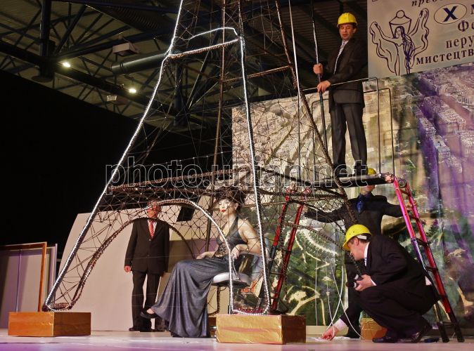 Модель демонстрирует самую большую и самую высокую прическу в мире - "Эйфелева башня из волос" высотой 7,7 м. во время гала-шоу "Париж, я люблю тебя!" в рамках Х Фестиваля парикмахерского искусства, моды и дизайна "Хрустальный ангел", в Киеве, в воскресенье, 10 апреля 2011 г. На гала-шоу "Париж, я люблю тебя!" переплелись хореография, дефиле, пантомима, театр и мюзикл. Изюминкой программы стало создание на глазах у зрителей самой большой и высокой прически в мире, конструкция которой создана по аналогии с Эйфелевой башней. Высота прически 7,7 м, объем - 5,85 куб.м. Для создания рекордной прически было сплетено более 250 метров тоненьких косичек и около 100 метров ажурных кос. Для украшения прически использовали более 500 декоративных камней. Уникальная прическа зарегистрирована в "Книге рекордов Украины" в категории "Искусство, впервые". Фото Андрея Скакодуба / УНИАН
