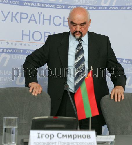 Президент непризнанной республики Приднестровье Игорь Смирнов во время пресс-конференции, в Киеве, в среду, 27 апреля 2011 г. В этот день Смирнов, находящийся с деловым визитом в Киеве, встретился с министром иностранных дел Украины Константином Грищенко. По итогам встречи состоялась пресс-конференция, в ходе которой Президент ПМР прокомментировал текущее состояние переговорного процесса с Молдавией, и сообщил, что Приднестровье готово к переговорному процессу в формате «5+2» по Приднестровскому урегулированию. Кроме того, были рассмотрены вопросы двухстороннего сотрудничества, в частности, торгово-экономического. Игорь Смирнов считает, что Украина и Приднестровье создадут единый координационный совет. Фото Александра Синицы / УНИАН