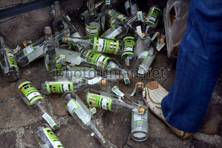 Пустые бутылки из-под водки на территории полевой кухни во время празднования 66-й годовщины Победы, в Ужгороде, в понедельник, 9 мая 2011 г. Фото Яноша Немеша / УНИАН