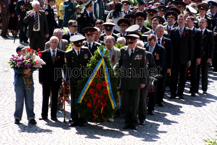 Военнослужащие, ветераны и представители власти несут венки на Холм Славы во время празднования 66-й годовщины Победы, в Ужгороде, в понедельник, 9 мая 2011 г. Фото Яноша Немеша / УНИАН