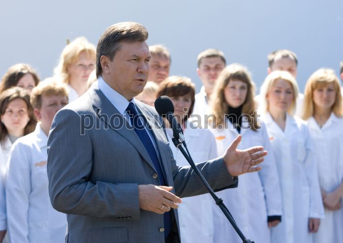 Президент Украины Виктор Янукович во время визита на предприятие промышленного птицеводства «Комплекс «Агромарс» в Вышгородском районе Киевской области, в пятницу, 13 мая 2011 г. Президент ознакомился с новыми технологиями по производству мяса цыплят-бройлеров, осмотрев, в частности, новый комбинат по переработке мяса птицы. Президент поинтересовался размерами заработной платы работников завода и проблемами, с которыми сталкивается коллектив. Фото Михаила Маркива / POOL / УНИАН