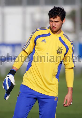 Вратарь национальной сборной команды Украины по футболу Александр Рыбка во время открытой тренировки, на учебно-тренировочной базе в Конча-Заспе, во вторник, 30 августа 2011 г. Фото Андрея Скакодуба / УНИАН
