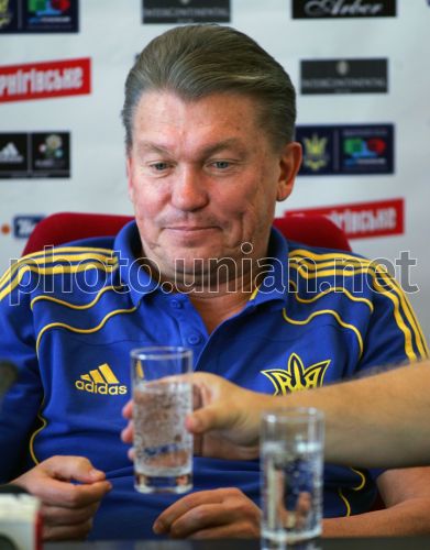 Главный тренер сборной Украины по футболу Олег Блохин во время пресс-конференции, на учебно-тренировочной базе в Конча-Заспе, во вторник, 30 августа 2011 г. Фото Андрея Скакодуба / УНИАН