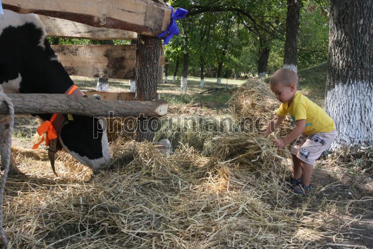 Маленький мальчик несет сено, в с. Андреевка (Покровский р-н, Днепропетровская обл.), в среду, 7 сентября 2011 г. В этот день на сельскохозяйственном обслуживающем кооперативе (СОК) «Благосостояние Андреевки» состоялось официальное открытие пункта сбора и охлаждения молока СОК с вручением членам-владельцам личных сельских хозяйств первой партии племенных нетелей. Мероприятие проводился в рамках проекта «Развитие молочарских кооперативов». Фото Сергея Исаева / УНИАН