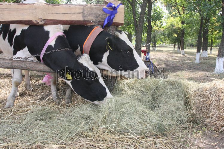 Коровы, в с. Андреевка (Покровский р-н, Днепропетровская обл.), в среду, 7 сентября 2011 г. В этот день на сельскохозяйственном обслуживающем кооперативе (СОК) «Благосостояние Андреевки» состоялось официальное открытие пункта сбора и охлаждения молока СОК с вручением членам-владельцам личных сельских хозяйств первой партии племенных нетелей. Мероприятие проводился в рамках проекта «Развитие молочарских кооперативов». Фото Сергея Исаева / УНИАН