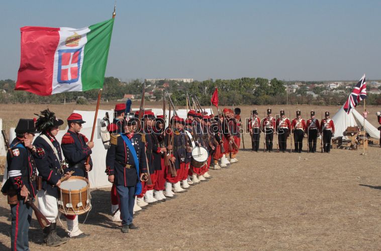 Участники военно-исторической реконструкции, посвящённой Альминскому сражению, в с. Вилино (Бахчисарайский район, Крым), в воскресенье, 25 сентября 2011 г. Реконструкция боя проходила на берегу реки Альма. На поле Альминского сражения свершилась битва-предвестница героической Севастопольской страды. Именно на Альминском поле впервые скрестили штыки русские и британские войска. Альминское сражение - это первое крупное сражение Крымской войны 1853 - 1856 годов. Оно состоялось в сентябре 1854 года между войсками коалиции Великобритании, Франции и Турции с одной стороны, и России - с другой. Победу в Альминском сражении одержали войска коалиции. Фото Алексея Сувирова / УНИАН