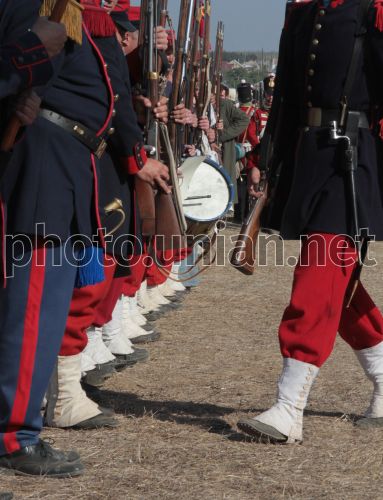 Участники военно-исторической реконструкции, посвящённой Альминскому сражению, в с. Вилино (Бахчисарайский район, Крым), в воскресенье, 25 сентября 2011 г. Реконструкция боя проходила на берегу реки Альма. На поле Альминского сражения свершилась битва-предвестница героической Севастопольской страды. Именно на Альминском поле впервые скрестили штыки русские и британские войска. Альминское сражение - это первое крупное сражение Крымской войны 1853 - 1856 годов. Оно состоялось в сентябре 1854 года между войсками коалиции Великобритании, Франции и Турции с одной стороны, и России - с другой. Победу в Альминском сражении одержали войска коалиции. Фото Алексея Сувирова / УНИАН