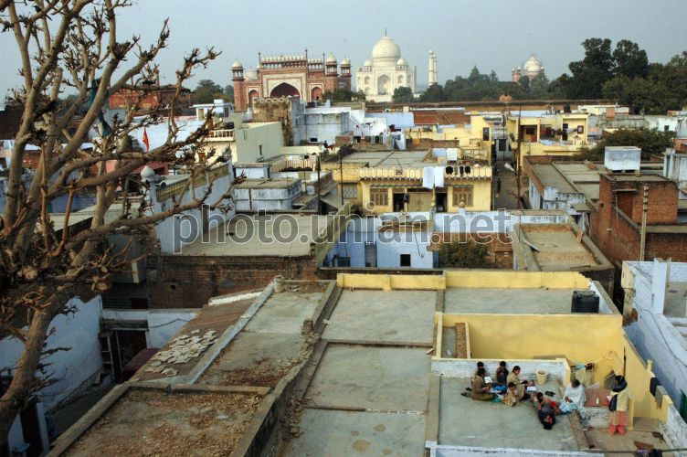 COMM АРХИВ УНИАН Один из районов Агры, Индия, январь 2006 г. На заднем плане - мавзолей Тадж-Махал, символ преданной любви, одно из 8 чудес света. Своей славой Тадж-Махал обязан не только прекрасной архитектуре, в которой сочетаются величие и изящество, но и связанной с ним романтической легенде. Мавзолей был построен в XVII веке правителем империи Великих Моголов Шах-Джаханом в память о любимой жене, чья смерть повергла его в безутешное горе. Фото Олега Ельцова / УНИАН