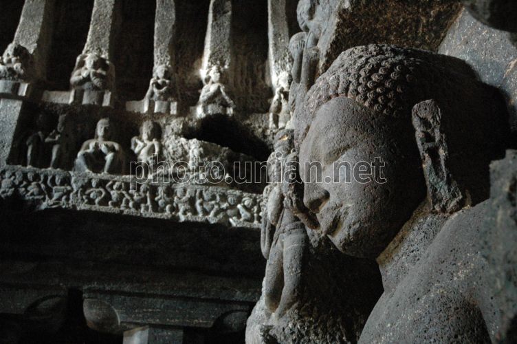 COMM АРХИВ УНИАН Уникальные по своему содержанию элементы архитектуры в одном из прекрасно сохранившихся буддийских храмов Еллоры (Индия), декабрь 2005 г. Фото Олега Ельцова / УНИАН