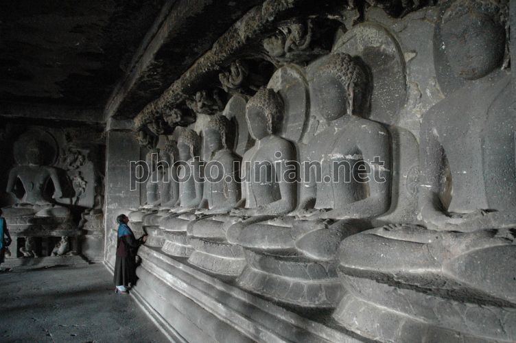 COMM АРХИВ УНИАН Женщина поклоняется Будде в одном из прекрасно сохранившихся, древних храмов Еллоры (Индия), декабрь 2005 г. Фото Олега Ельцова / УНИАН