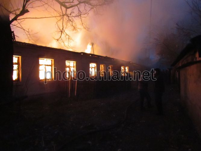 Пожар в жилом доме барачного типа в Ильичевском р-не Мариуполя (Донецкая обл.), в субботу, 12 ноября 2011 г. В этот день, около 15 часов в Мариуполе загорелся дом. По предварительным данным, никто из жильцов не пострадал. К месту происшествия выехали 4 пожарных расчета СГПЧ-25 и аварийно-спасательные машины МЧС. Работу спасателей затрудняло то, что район, в котором находится дом, - безводный, то есть там негде пополнить запас воды в автоцистернах. Борьба с огнем длилась несколько часов. В результате из 11 квартир жилого дома пожарным удалось спасти только 2. Остальные 9 сгорели дотла. Около 20 человек остались без крова. Причина пожара устанавливается. Фото Николая Рябченко / УНИАН