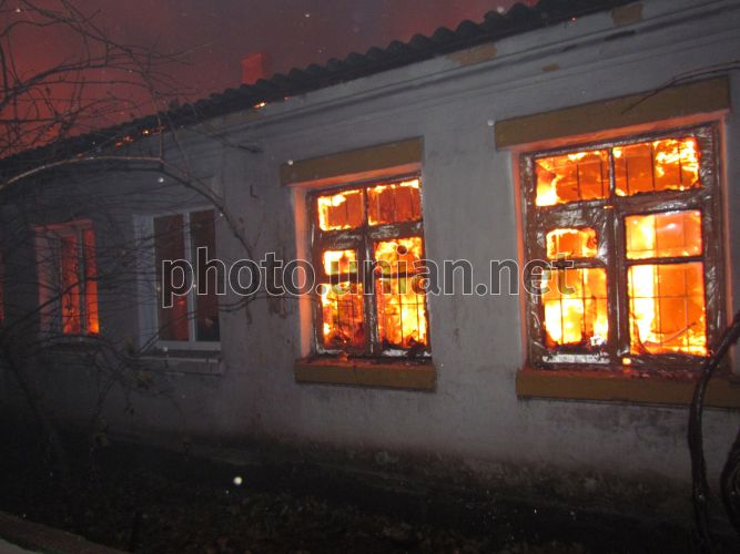 Пожар в жилом доме барачного типа в Ильичевском р-не Мариуполя (Донецкая обл.), в субботу, 12 ноября 2011 г. В этот день, около 15 часов в Мариуполе загорелся дом. По предварительным данным, никто из жильцов не пострадал. К месту происшествия выехали 4 пожарных расчета СГПЧ-25 и аварийно-спасательные машины МЧС. Работу спасателей затрудняло то, что район, в котором находится дом, - безводный, то есть там негде пополнить запас воды в автоцистернах. Борьба с огнем длилась несколько часов. В результате из 11 квартир жилого дома пожарным удалось спасти только 2. Остальные 9 сгорели дотла. Около 20 человек остались без крова. Причина пожара устанавливается. Фото Николая Рябченко / УНИАН