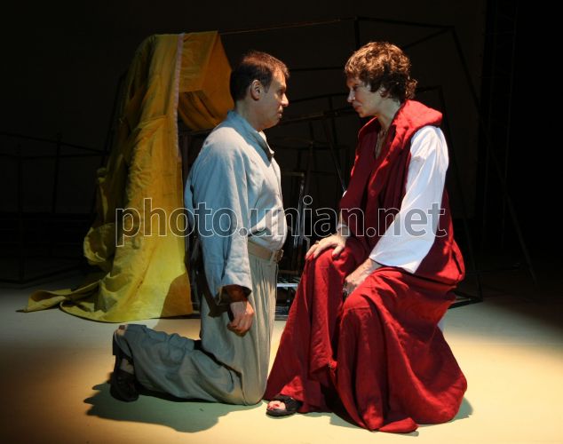 FILE Российские актеры Татьяна Васильева в роли Белы Берло и Ефим Шифрин в роли Йоханана Цингербая во время спектакля «Торговцы резиной» по пьесе израильского драматурга Ханоха Левина, в понедельник, 12 июля 2010 г. 13 декабря 2011 года в Киеве состоится премьера комедии «Торговцы резиной». Герои смешной пьесы израильского драматурга Ханоха Левина озабочены тем, как устроить свое счастье, выгодно при этом распорядившись своими накоплениями. Все они уже немолодые люди, а потому говорят о своих желаниях прямо и открыто. Фото предоставлено концертно-театральным агенством "Виктория" / УНИАН