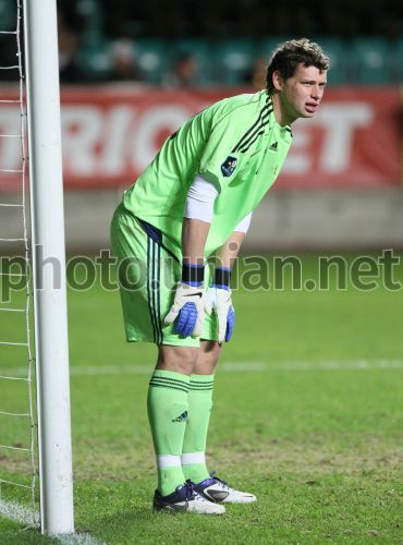 FILE Вратарь Сборной Украины по футболу Александр Рыбка (№12) во время товарищеского матча в рамках подготовки к ЕВРО-2012 между Сборными Эстонии и Украины, в Таллине (Эстония), во вторник, 11 октября 2011 г. По сообщению некоторых СМИ, допинг-проба, взятая у голкипера «Шахтера» Александра Рыбки, дала положительный результат. Запрещенное вещество попало в организм вратаря в результате употребления средства для похудения. Положительный результат дала проба, взятая у Рыбки УЕФА. Фото УНИАН